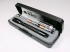 プラスティック製ギフト・ボックス入り。ポケット・クリップと電池が付属です。