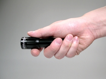 手の中に納まる小型ハンドライトですね。