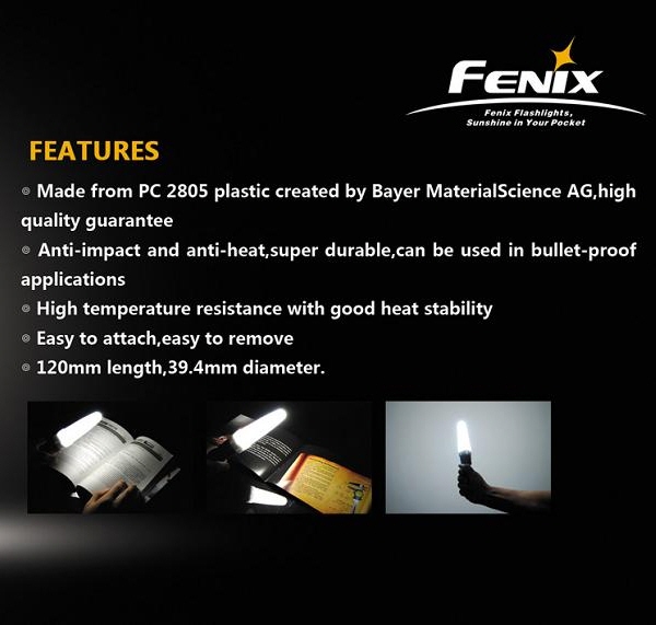 FENIX Diffuser Tip 【WHITE】は、ヘッド部に取り付けることで、照射光を拡散させ、手元〜近距離を360度、広範囲に照らすときに役立ちます。蛍光灯のように柔らかな光で照らします。装着部は工具なしで、簡単にヘッド部に取り付けることができます。