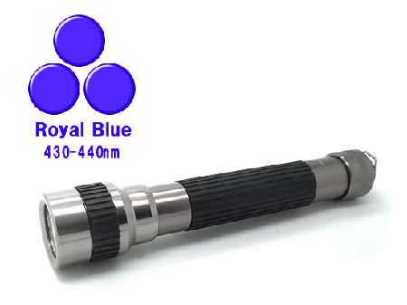 | 【430-440nm ロイヤル・ブルー 5mm砲弾型LED×3灯搭載/単3電池×2本】 アルミ製ハンディライト : HLK-2AA-3LED-430-440nm |