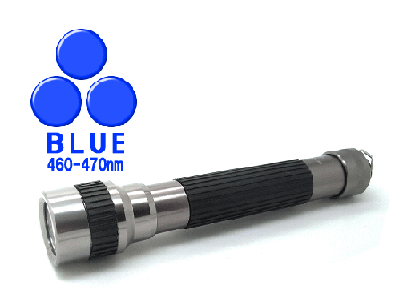 | 【460-470nm 青色 5mm砲弾型LED×3灯搭載/単3電池×2本】 アルミ製ハンディライト