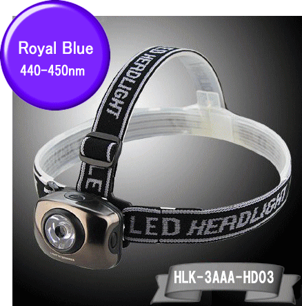 | 【440-450nm ロイヤル・ブルー 1W-LED搭載ヘッドライト】 HLK-3AAA-HD03-440-450NM