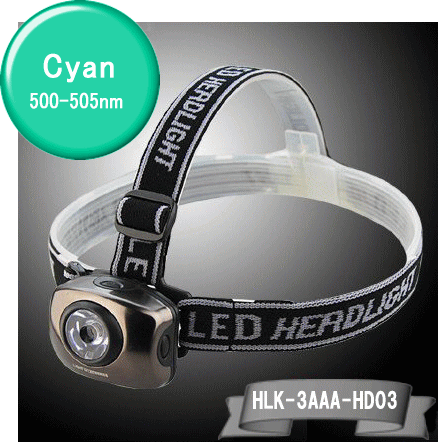 | 【500-505nm シアン 1W-LED搭載ヘッドライト】 HLK-3AAA-HD03-500NM : 単4電池×3本 |