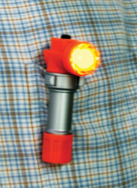 PentagonLight MOLLE Light は、0.5 Watt White LED搭載のL型ハンド・ライトです。手元〜近距離照射に適した明るさです。電源は、単3アルカリ電池×1本使用です。点灯・消灯は、上部プッシュ・ボタンで操作します。消灯状態で、スイッチを軽く押すと間欠点灯します。カチッと押し込むと常時点灯します。ボディ部には、回転式クリップがついています。モール・システム、ベルト、リュックに装着することができます。クリップは、取り外すことができます。
