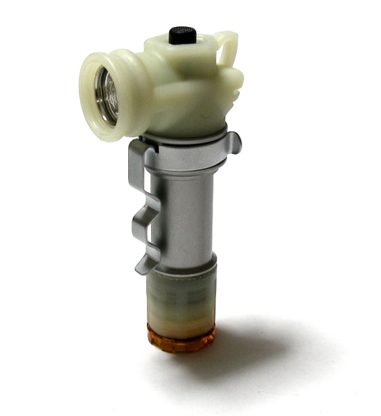 PentagonLight MOLLE Light は、0.5 Watt White LED搭載のL型ハンド・ライトです。手元〜近距離照射に適した明るさです。電源は、単3アルカリ電池×1本使用です。点灯・消灯は、上部プッシュ・ボタンで操作します。消灯状態で、スイッチを軽く押すと間欠点灯します。カチッと押し込むと常時点灯します。ボディ部には、回転式クリップがついています。モール・システム、ベルト、リュックに装着することができます。クリップは、取り外すことができます。