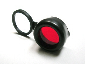 レッド色の取付式フィルターです。装着部は伸縮性があるので、工具なしで、簡単にヘッド部に取り付けることができます。落下防止のゴム・リングがついています。