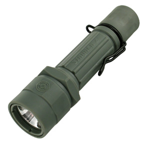 | Tactical Operations Products Stryker, 6V Xenon, Green Zytel Body は、Xenon球搭載のハンド・ライトです。ボディ材質は、頑丈・軽量なザイテル製です。点灯・消灯方法は、エンド・キャップの回転で常時点灯。エンド・キャップの中央プッシュボタンを押すことで間欠点灯します。電源は、リチウム電池CR123A×2本使用です。着脱可能なスティール製ポケット・クリップが付属。コロコロ転がらないアンチ・ロール・デザインです。 |