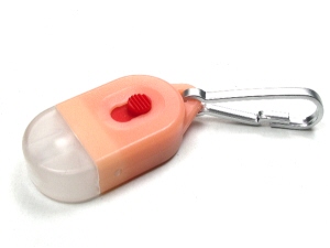 ABITAX 0510 TagLight は、砲弾型白色LED×1灯搭載の小型LEDライトです。ジャケットやバック類のファスナー、携帯電話のストラップ、キーホルダーなど、さまざまな場所に付属のナス環で簡単に取り付ける事ができます。スイッチを押している間は点灯し、前方へスライドさせると常時点灯します。本体主材料はプラスティックです。電池交換は工具なしで行えます。