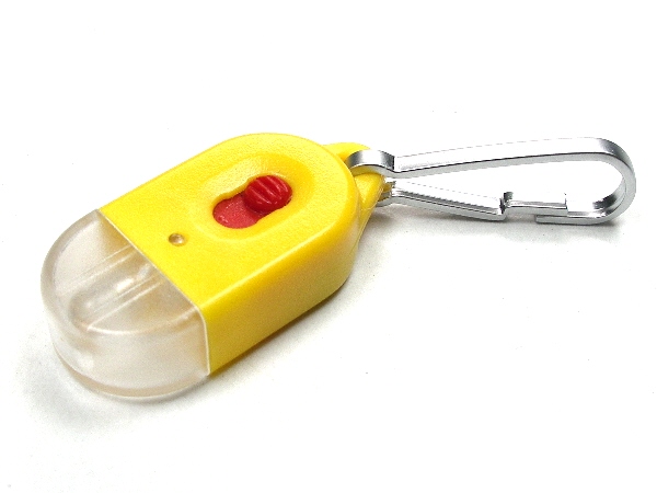 ABITAX 0510 TagLight は、砲弾型白色LED×1灯搭載の小型LEDライトです。ジャケットやバック類のファスナー、携帯電話のストラップ、キーホルダーなど、さまざまな場所に付属のナス環で簡単に取り付ける事ができます。スイッチを押している間は点灯し、前方へスライドさせると常時点灯します。本体主材料はプラスティックです。電池交換は工具なしで行えます。