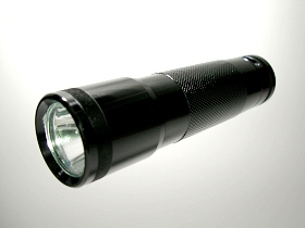 | 3W Tactical LED Flashlight は、3W-Luxeon搭載のシンプルなデザインのコンパクトライトです。全長は約123mmです。大き過ぎず、小さ過ぎない手の中に納まるサイズで、しっかりと握ることができます。電源は、単4アルカリ電池×3本使用です。単4アルカリ電池は、比較的安価で、どこでも購入できるので、経済的ですね。点灯・消灯方法は、エンド部プッシュ式です。点灯モードで、プッシュ・ボタンを軽く『押す→離す→押す→』で間欠点灯操作ができます。本体は、アルミ製で安心の防水(水深30cm:1時間)仕様です。ヘッド部の回転で緩やかなスポット〜ワイドの焦点調整ができます。ポーチとストラップが付属。 |