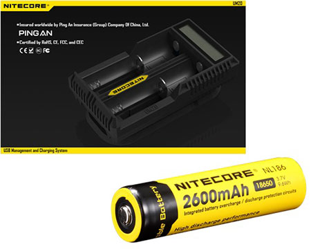 【NITECORE NL186 2600mAh バッテリー 1本付属】 NITECORE UM20 USB電源充電器