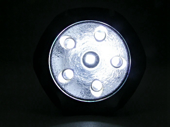 5W-LED+砲弾型白色LED×5灯 点灯時