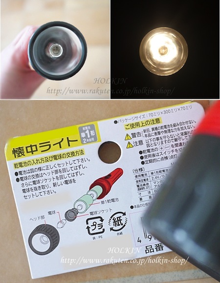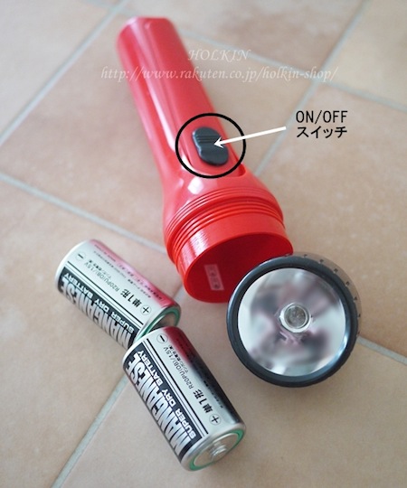 点灯時間:(連続使用、20℃) マンガン乾電池(黒)使用時:約6時間 アルカリ乾電池使用時:約12時間