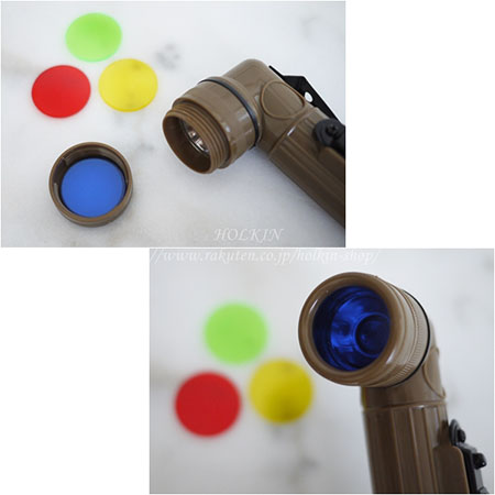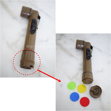 ROTHCO / ロスコ L型フラッシュライト 単3電池×2本使用 赤・黄・緑・青レンズ・交換球付き
