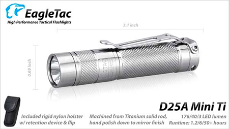 【CREE XM-L Neutral White 搭載 / 単3電池×1本】 EagleTac D25A MINI TI XM-L-NW