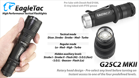 4段階明るさ切替+Strobe / Beacon / SOS
