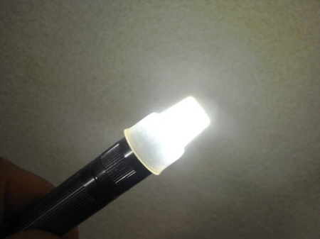 懐中電灯の、ヘッド部に取り付けることで、照射光を拡散させ、手元〜近距離を360度