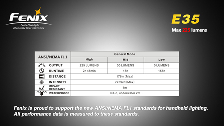 hour runtime High: 225 Lumens, 2 hours 48 minute