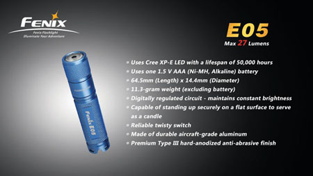 ■FENIX E05:本体色:ブルー