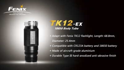 のボディを本品に付け替えることで、18650電池×1本で使用できます。 CR123×2本でも使用できます。 |