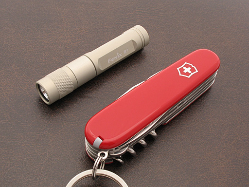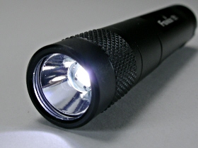 FENIX E1 は、 Nichia Power LED 搭載のコンパクト・ライトです。電源は単4電池×1本使用です。手元〜足元を照らす程度の近距離照射に役立ちます。点灯・消灯方法は、ヘッド部回転式です。本体材料はアルミ合金です。