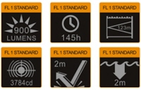 lumens High: 400 lumens / 3h45min Mid: 150 lumens / 10h10min Low: 50
