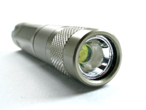 | 電源は単4電池×1本のみ使用ですが、近距離を十分な明るさで照らすことができるのが特長です。点灯・切替・消灯方法は、ヘッド部回転式です。本体材料はアルミ合金です。 |