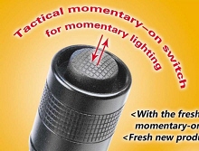 | スイッチ部が凸型のタクティカル・テール・キャップが付属です。消灯状態で、スイッチを軽く押すと間欠点灯します。カチッと押し込むと常時点灯します。 |