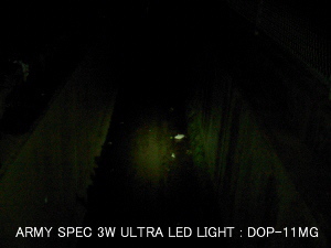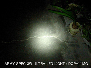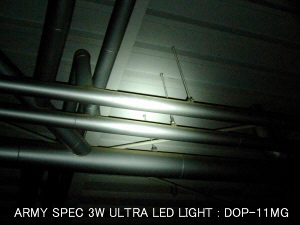 3W−LED搭載の小型ライトです。近距離を十分な明るさで照らすことができました。照射範囲は、比較的広いほうです。