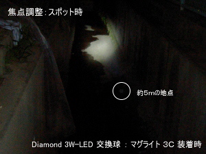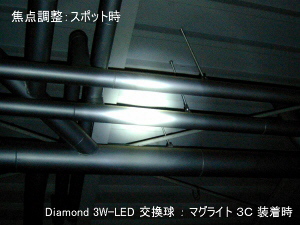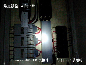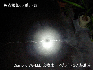 3W-Luxeon 塔載の交換球ユニットです。マグライト3セルに装着して使用します。中距離を十分な明るさで照らせます。