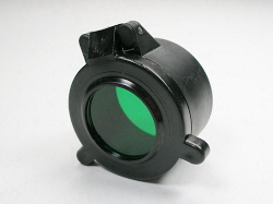 グリーン色の開閉式フィルター・レンズです。装着部は伸縮性があるので、工具なしで簡単にヘッド部に取り付けることができます。フィルター部は、開閉式で、簡単にフリップ・アップできます。