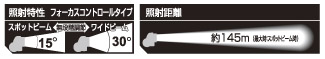 機能:センサースイッチモード/フォーカスコントロール/ 機能:SOSパターン点滅機能 機能:インスタントオフスイッチ/防滴仕様 |