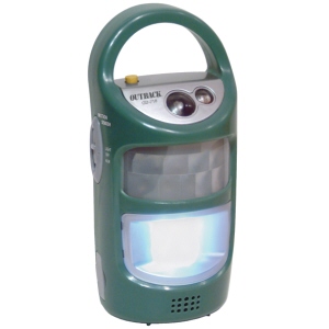 | 電源のない野外では、手巻き充電で内蔵電池に蓄電できます。 |