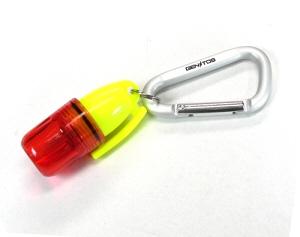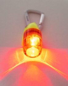 KL-115RD は、赤色LED×1灯搭載の小型フラッシュLEDライトです。電源は、ボタン電池LR41を3個使用です。省電力で連続点灯時間は、30時間です。自転車、犬の散歩等、多種多彩な用途に役立ちます。着脱が簡単なカラビナ付です。点灯・消灯方法は、ヘッド部回転式です。本製品は、点滅操作のみです。 |