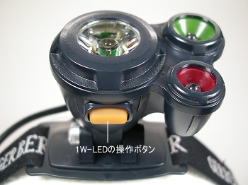 ヘッド部の下部に1W-LEDの操作ボタンがあります。