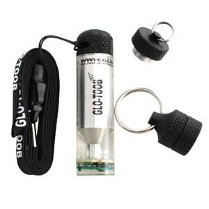 | GLO-TOOB FX7 Deluxe Pack は、GLO-TOOB FX本体と、『プッシュ・ボタン・キャップ』、『ツイスト・ボタン・キャップ』、『スキューバ・キャップ』 の3種類のキャップ、ランヤード・ストラップがセットになったモデルです。 |