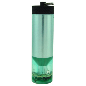 | GLO-TOOB FX7 は、円筒形小型・軽量・頑丈なシグナル・ライトです。内部に砲弾型緑色LEDが搭載されています。連続点灯、フラッシュ、SOSなど、7モード切替式で、使用状況に合わせて選べます。使用電池は、12V:23A規格アルカリ電池×1本です。点灯・切替は、上部キャップ回転式です。上部キャップ部に、金属リングがついているので、いろいろな場所に吊り下げることができます。完全防水のボディは、たいへん頑丈に作られていますので、アウトドア、ダイビングで十二分に活躍します。 |