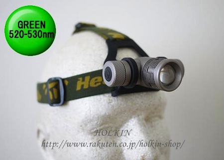 18650充電池専用 ヘッドライト 【520-530nm 緑色 1W-LED搭載】 18650×1本:HLK-1W-GREEN520-530nm