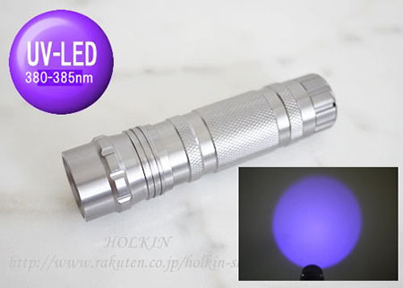 【マットブラック塗装反射鏡/380-385nm 紫外線 UV-LED 1W-LED搭載/単4電池×3本】 ハンディライト:HLK-3AAA-1w-380-385NM-NOHS