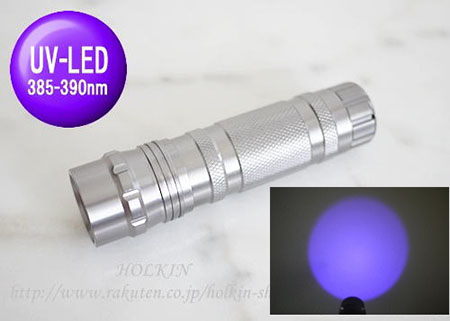【マットブラック塗装反射鏡/385-390nm 紫外線 UV-LED 1W-LED搭載/単4電池×3本】 ハンディライト:HLK-3AAA-1w-385-390NM-NOHS