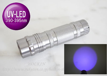 【マットブラック塗装反射鏡/390-395nm 紫外線 UV-LED 1W-LED搭載/単4電池×3本】 ハンディライト:HLK-3AAA-1w-390-395NM-NOHS