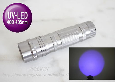 【マットブラック塗装反射鏡/400-405nm 紫外線 UV-LED 1W-LED搭載/単4電池×3本】 ハンディライト:HLK-3AAA-1w-400-405NM-NOHS