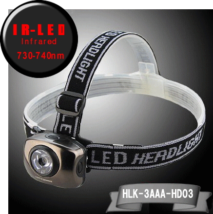 | 【IR : Infrared 730-740nm 赤外線1W-LED搭載ヘッドライト】 HLK-3AAA-HD03-IR730 : 単4電池×3本 |