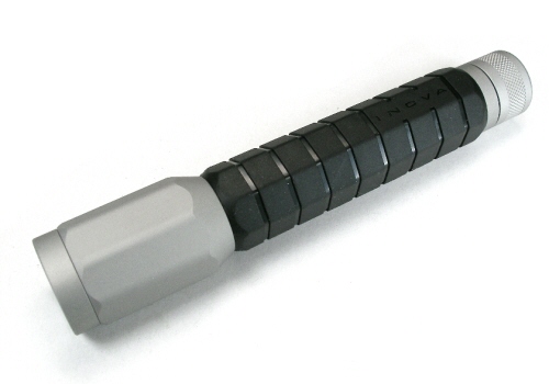 | INOVA BOLT 2L は、4.6 watt LED(※1)搭載のコンパクト・ライトです。照射範囲が比較的広いリフレクター:反射鏡搭載です。本体は、頑丈なアルミ製ボディです。グリップ部は、握りやすいラバーゴムで覆われています。電源は、CR123A×2本使用です。点灯・消灯は、テール・キャップで操作します。常時点灯と間欠点灯ができます。コロコロ転がらないアンチ・ロール・デザインです。 |