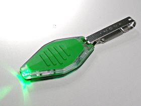 | INOVA MICROLIGHT は、砲弾型緑色LED×1灯搭載の小型ライトです。マイクロ・プロセッサー・スイッチ搭載で、連続点灯:強、連続点灯:弱、ストロボ、間欠点灯の4モード切替が可能です。近距離(鍵穴を照らす場合など)の照射に役立ちます。電源はボタン電池CR2016を2枚使用です。点灯切替方法は、カバー部で操作します。金属製クリップが付属しているので、鍵などを取り付けることができます。電池交換できます。 |