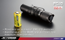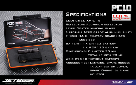 alloy Finish: HA III Military grade hard anodized Battery: 1xCR123