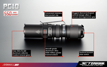 警告:550ルーメン・モード使用時は、本体がかなり熱くなりますので、