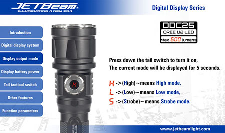 電池残量、点灯モードがディスプレーで確認できます。