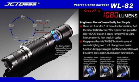and side easily changes modes. 4.Total of 7 modes: 5 output levels, tactical