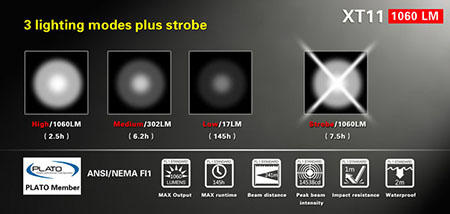 【明るさMAX : 1060ルーメン / CR123×2本 or 18650×1本使用】
